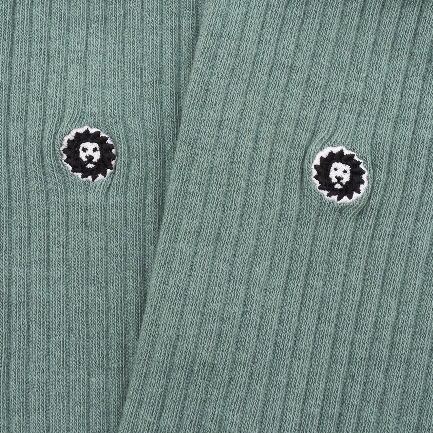 - Testa di leone, isotipo del marchio, ricamo ad alta definizione all’altezza dell’elastico.