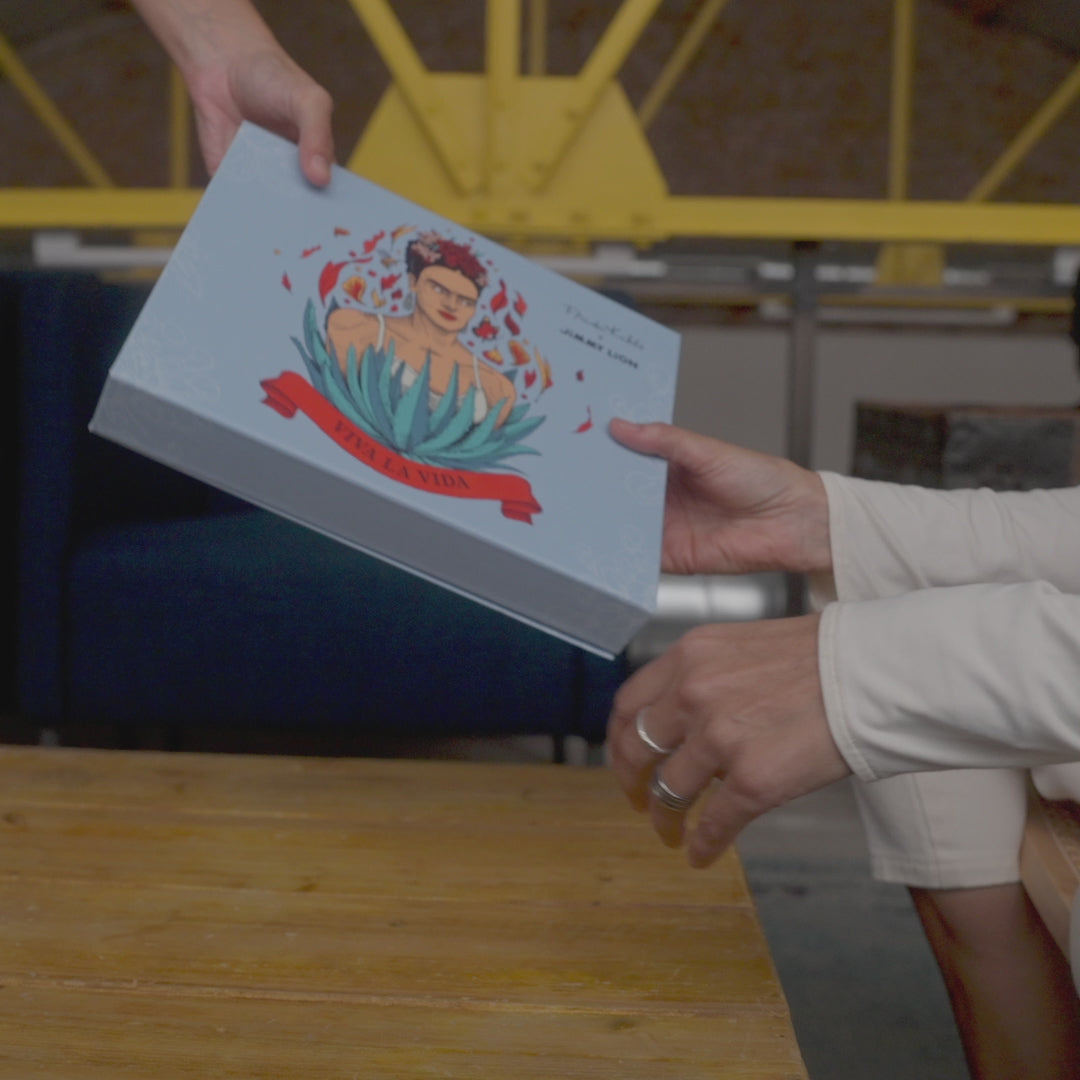 - Carta regalo: simbolo dell’iconico cuore dall’opera dell’artista con le parole: Dolor, Arte y Vida.